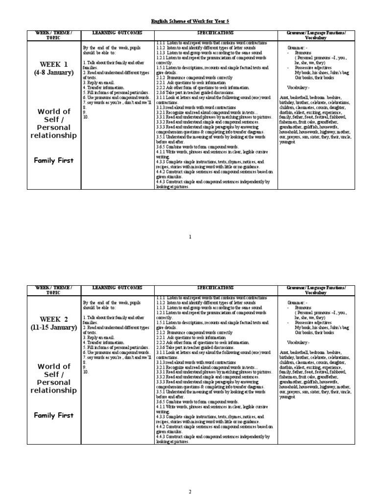 The year 5 english learning journey programme covers all the core areas of learning your child will be expected to master in english during year 5. Year 5 english lesson plans. English yearly scheme of work year 5 sk 2014. Students learn about text structures and encounter new and more complex language features. Keystage 2 interactive worksheets for year 5 english.